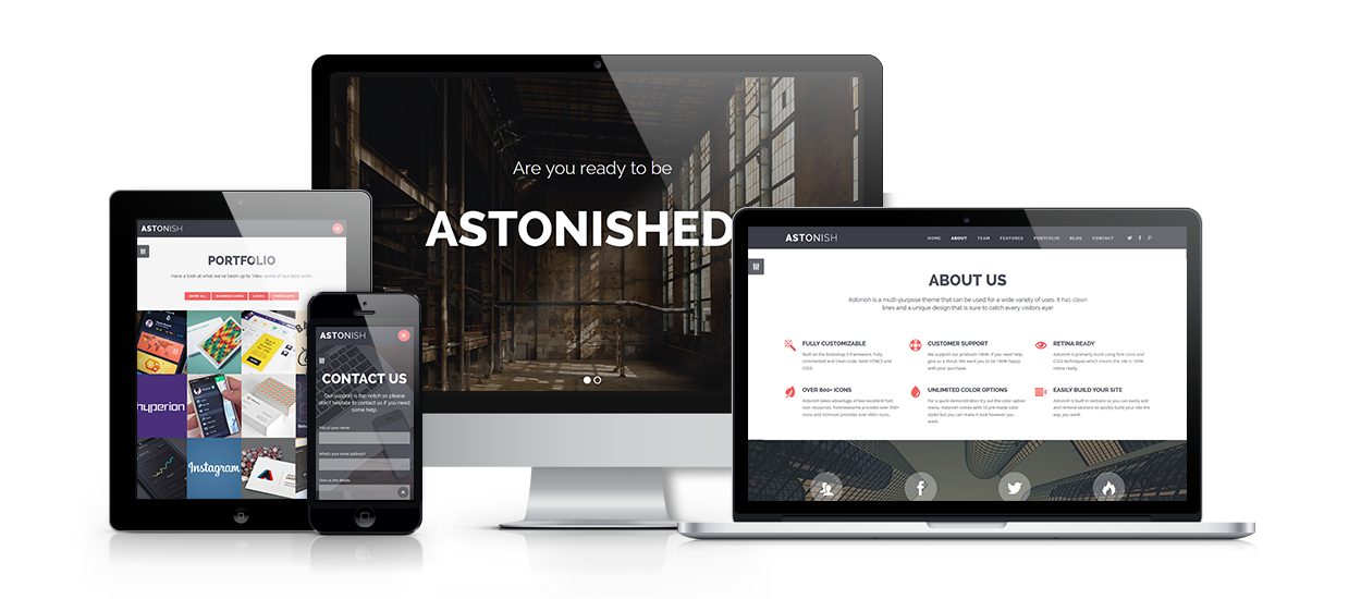 Astonish is fully built on the Bootstrap 3 framework which makes it 100% responsive and extremely user friendly.